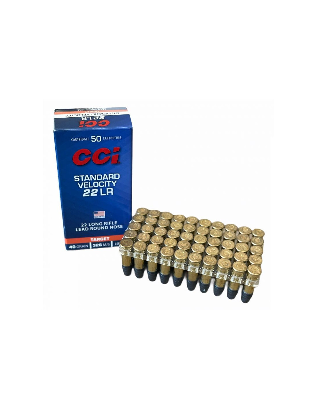 La cartouche CCI Standard LRN (Lead Round Nose) est une munition de calibre 22 LR qui peut être utilisée dans les armes de loisir ainsi que dans les armes de tir sportif, que ce soit pour le tir à l'arme de poing ou à la carabine. La balle plomb de cette munition possède un poids de 40 grains (2,59 grammes) et une vitesse de sortie de 325 mètres par seconde, ce qui lui assure une excellente précision et une grande stabilité en vol.