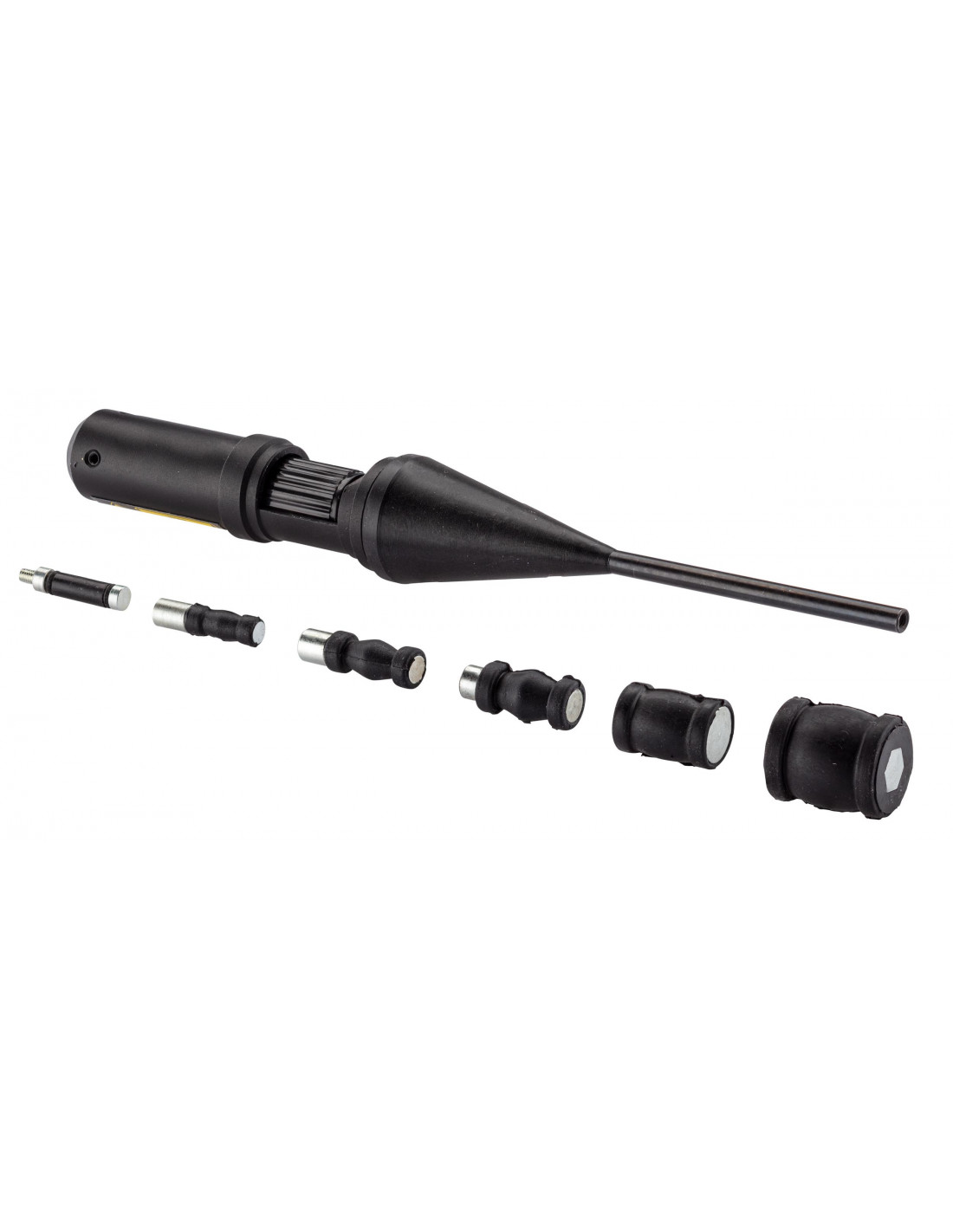 L'appareil est livré avec 7 ou 8 adaptateurs pour calibres : .22 / .25 (6,35 mm) / . 30 (7,62 mm) / .357 à .40 (9 à 10 mm) / . 50 (12,7 mm) / cal 20 / cal 12.