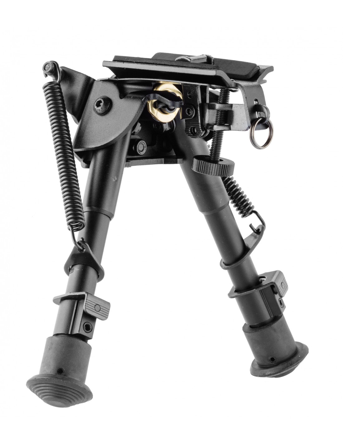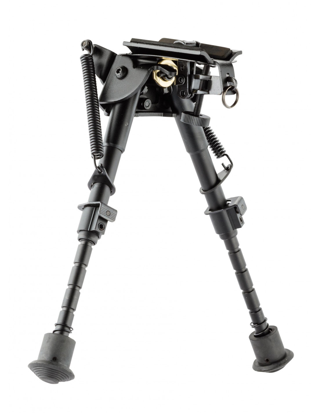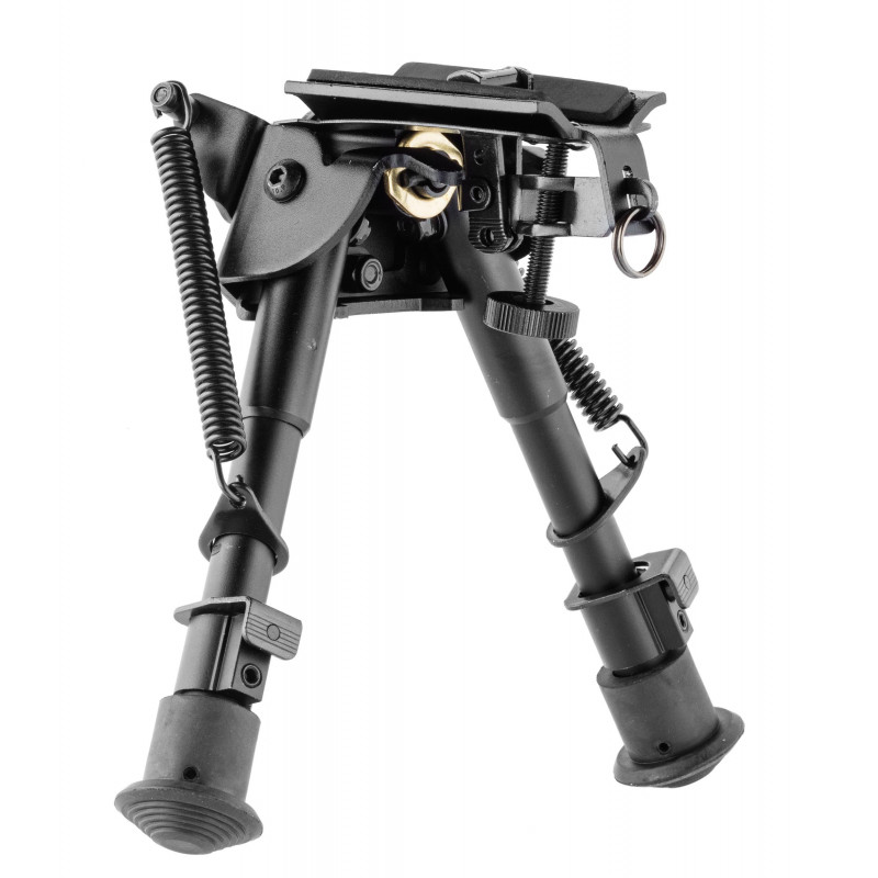 Bipied disposant d'un bras pliable robuste avec ressort de tension extérieur.