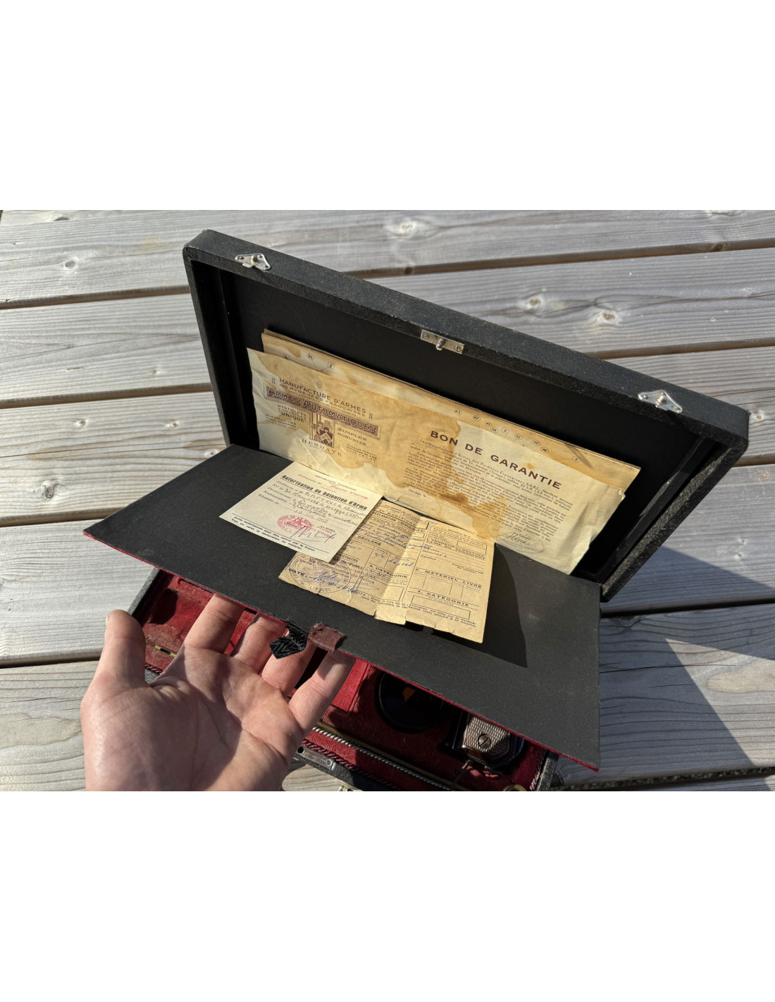 Pistolet de collection de fabrication Française des années 50, Modèle 52, une curiosité "Pistolet canon long de très haute précision" fabriqué par la Manufacture d'Armes des Pyrénées UNIQUE. Préfigure les premières armes pour le tir "sportif" de précision.
