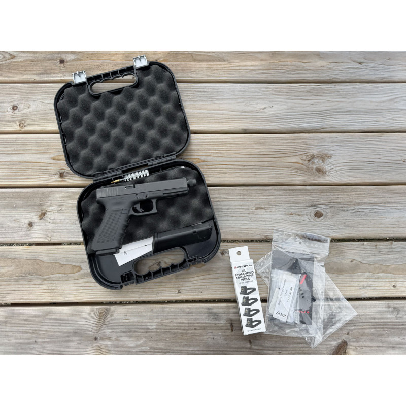 - Pistolet GLOCK 17 Gen4 Fileté en M13,5mm à gauche, avec sa boite, notice, ses deux chargeurs 17 coups (env. 790 euros neuf)