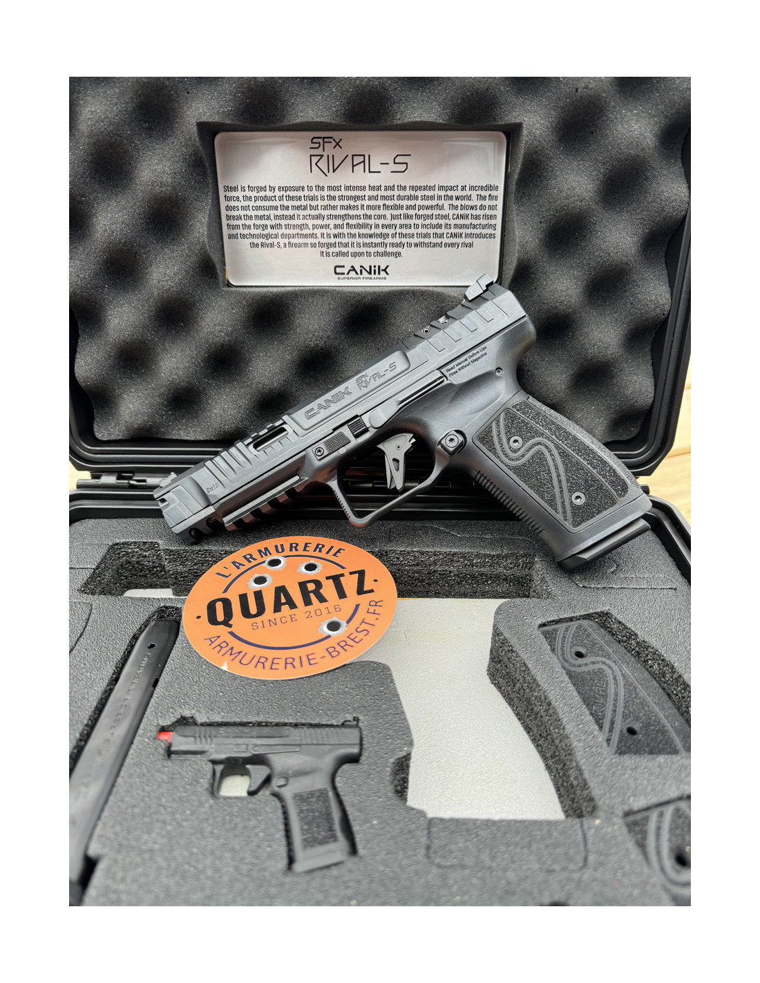 Le pistolet destiné aux tireurs sportifs expérimentés. En ACIER forgé, il est construit sur la base du SFx RIVAL élu meilleure arme de l'année en 2022 et intègre tout le savoir faire du fabricant régulièrement médaillé aux USA pour ses pistolets. Il est livré dans une mallette rigide sur deux étages avec différents accessoires (Chargeurs, grips, kit de nettoyage, holster, platines point rouge, puits de chargeur, outil de démontage...) Il existe également des accessoires MECANIK pour customiser le RIVAL-S (Grip bois, compensateur....)