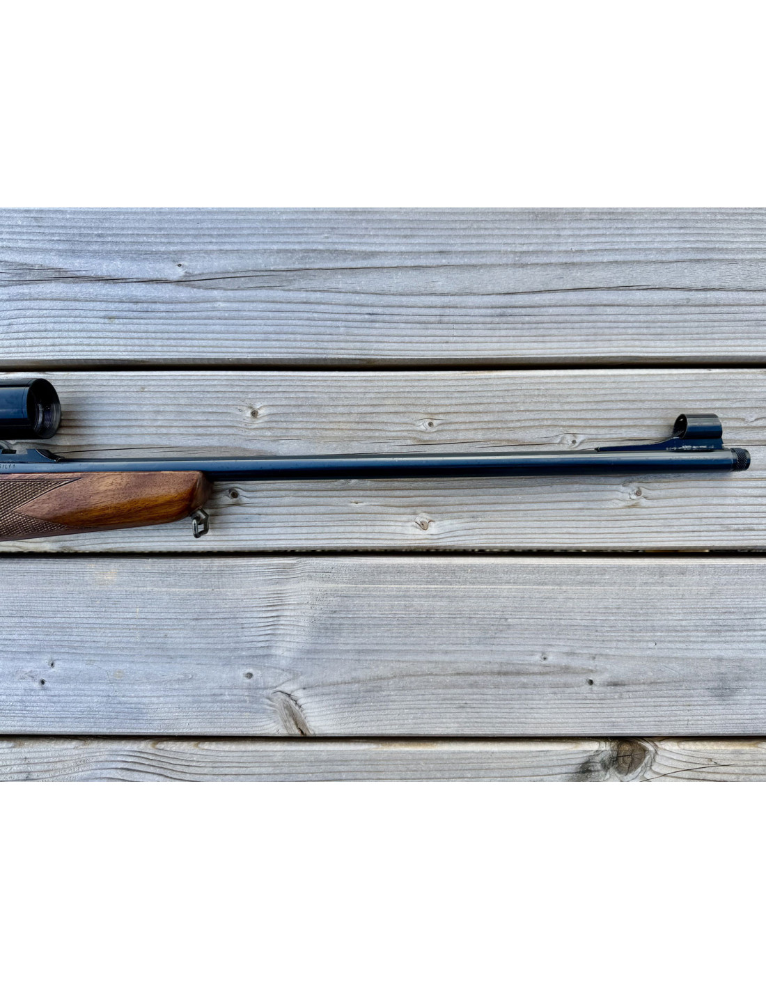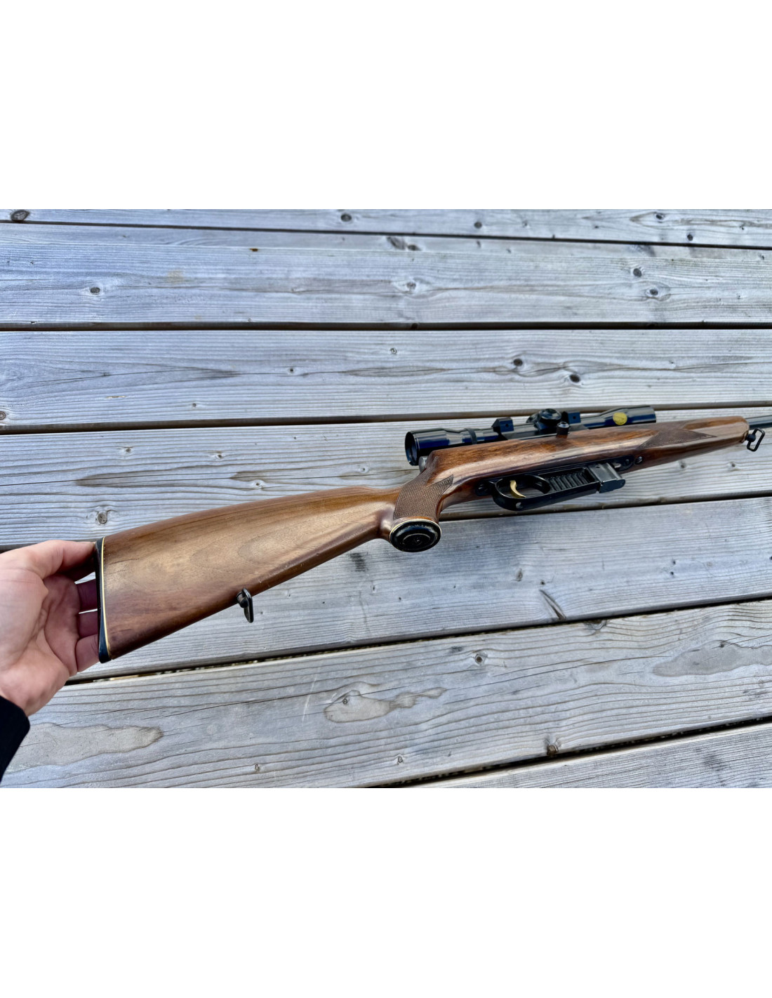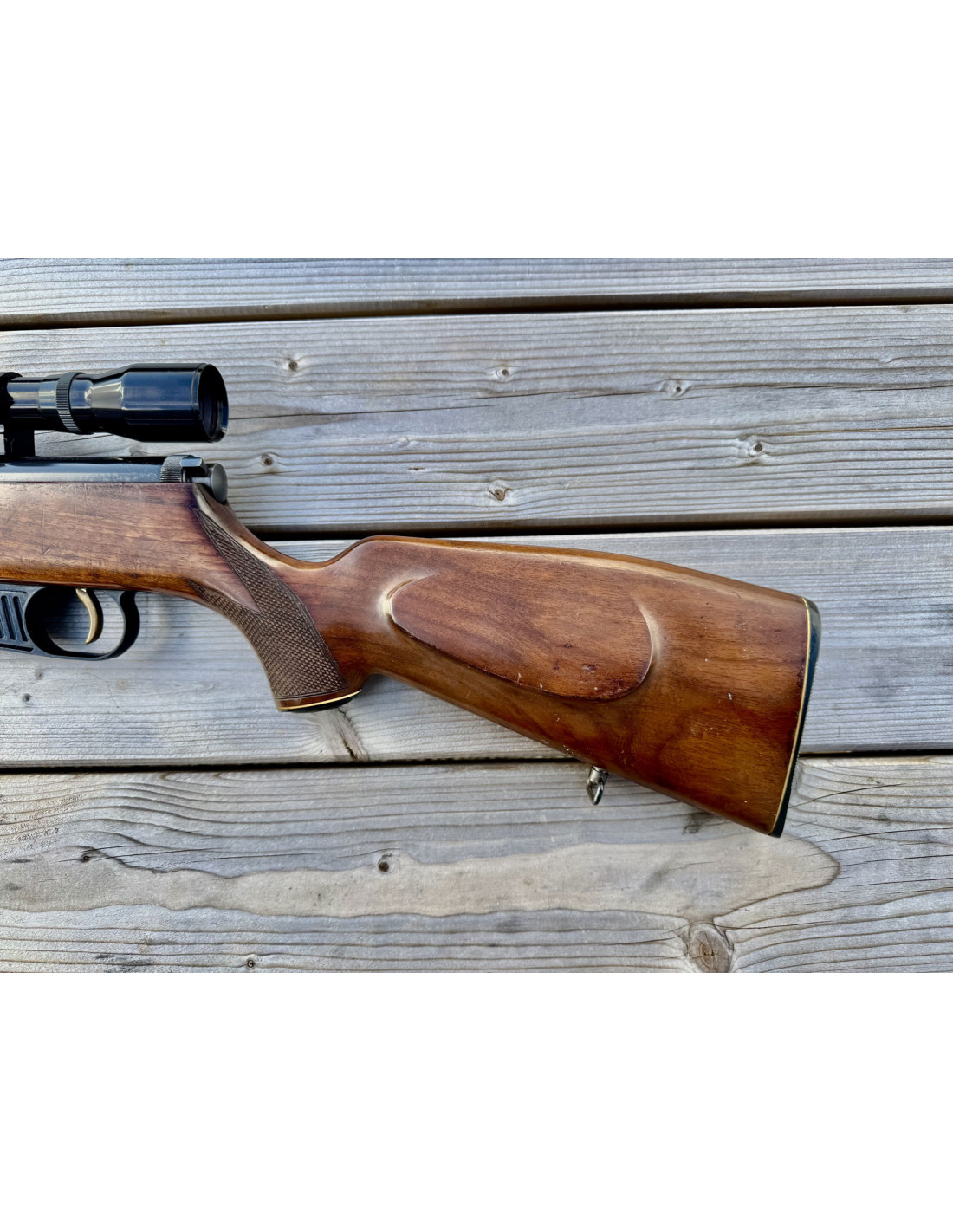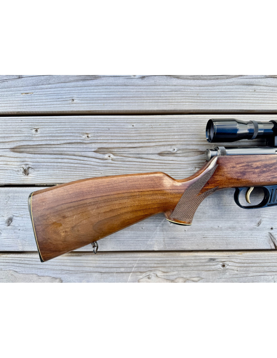 Avec lunette d'époque (année 70-80) HAKKO 4X32mm réticule à chevron, monté sur rail 11mm.