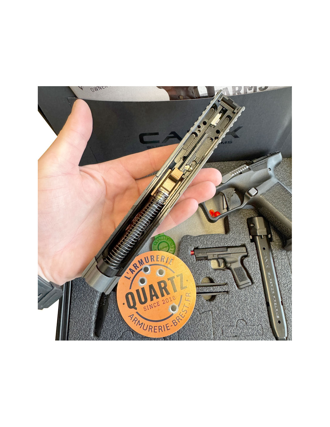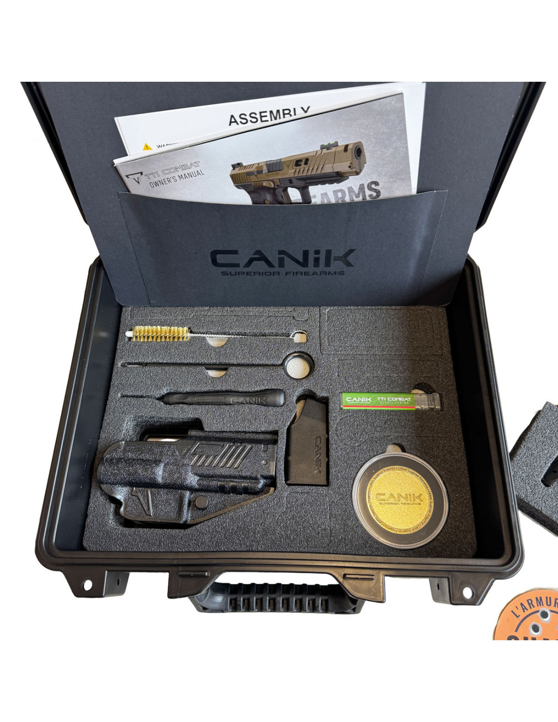 Niveau équipement, il est livré dans une mallette rigide sur deux niveaux avec différents accessoires (Chargeurs, dos de poignées différentes tailles, kit de nettoyage, holster, platines point rouge, puits de chargeur, outil de démontage, 1 ressort de rappel de culasse pour des munitoins rechargées ou sous-chargées....)
