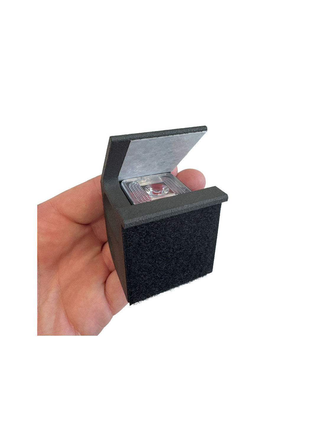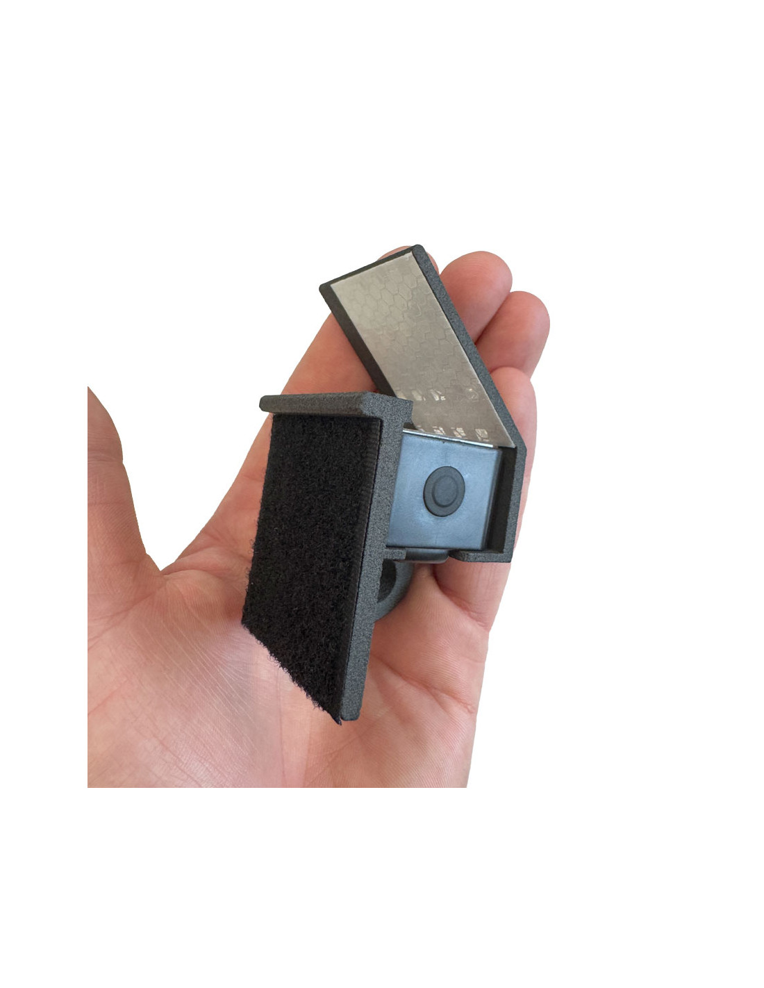Ce support a été spécialement conçu pour accueillir le détecteur d’impact Hornady HIT, en le positionnant à l’arrière de la cible métallique KING GONG, à l’abri des impacts directs. Le détecteur est parfaitement intégré dans le support, puis fixé à l’aide d’un Velcro double face haute résistance.