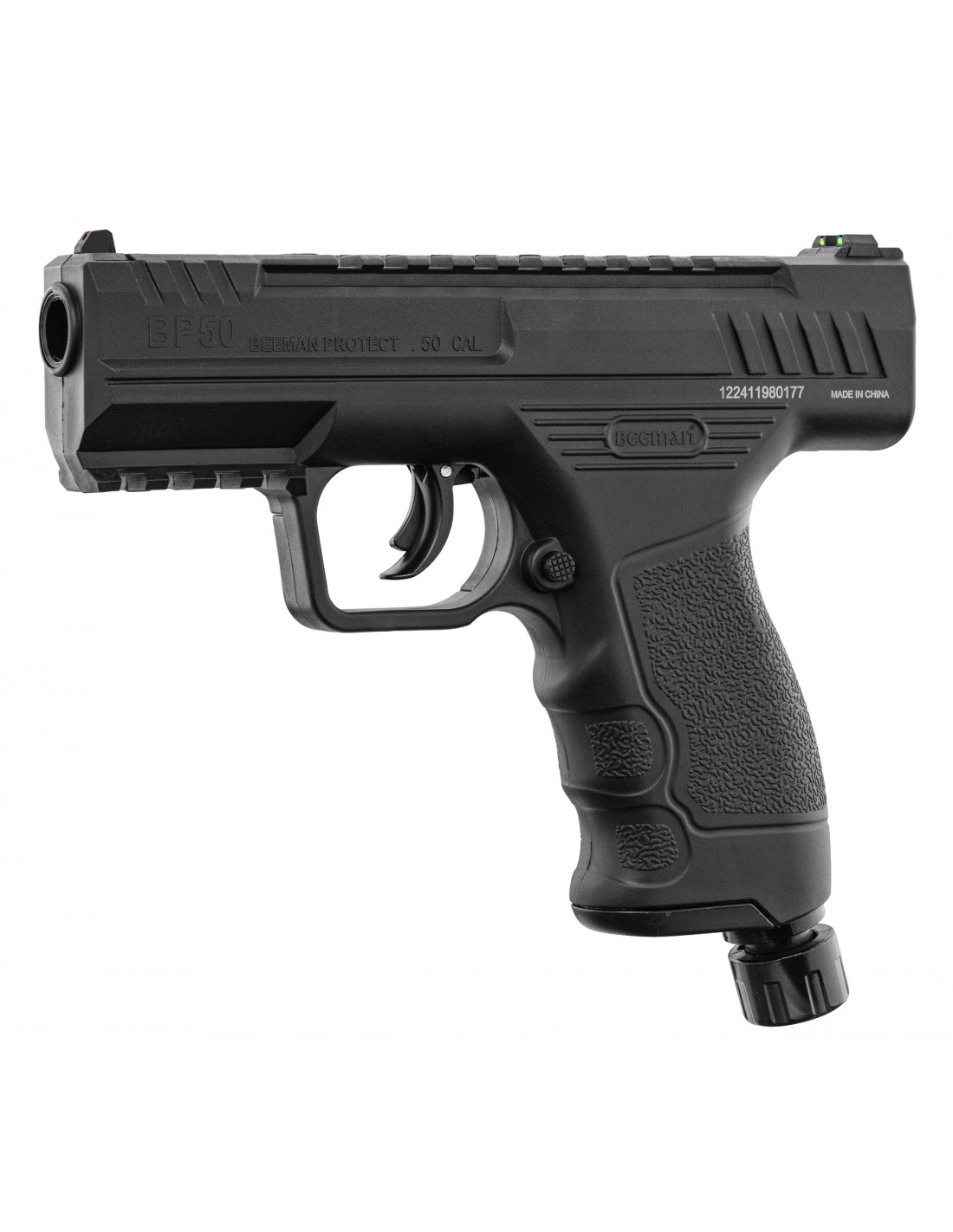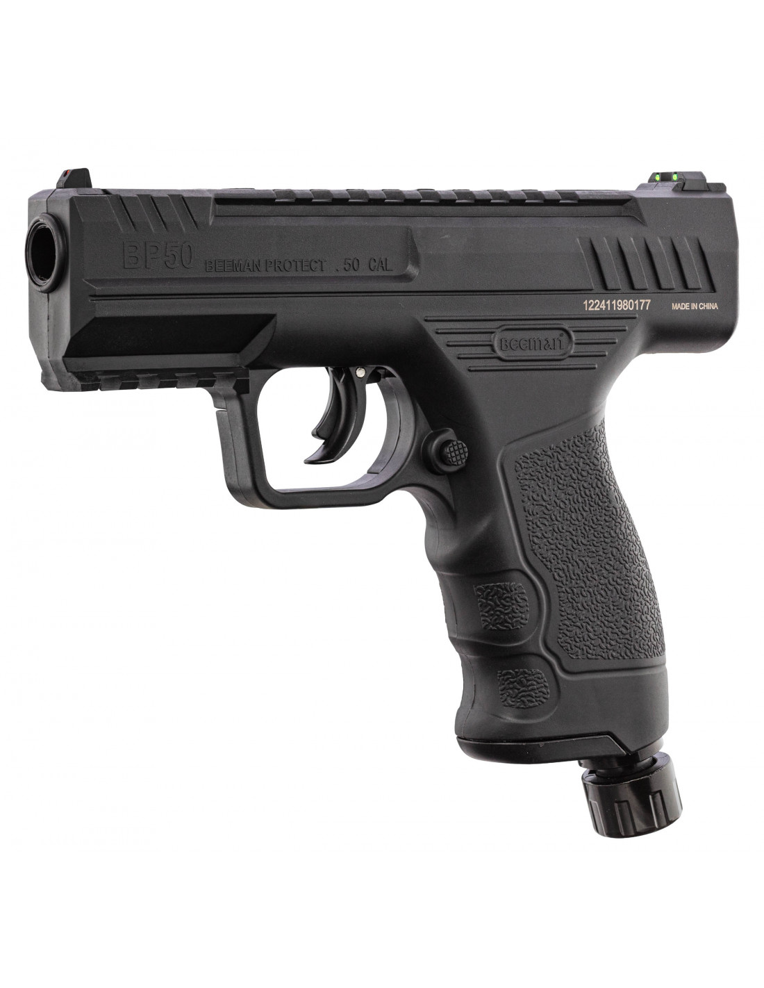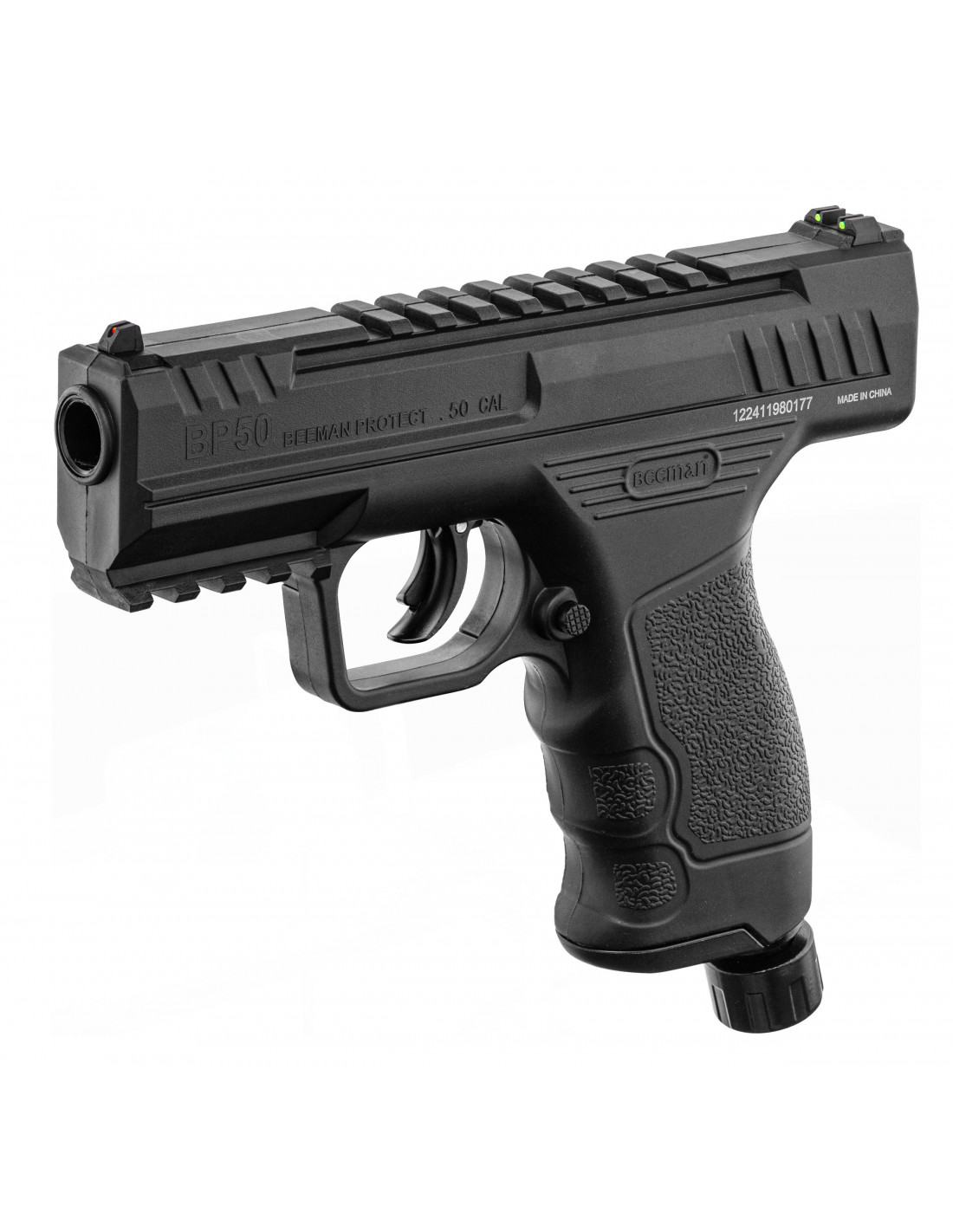 Le Beeman BP50 est un pistolet CO2 de calibre .50 conçu pour la défense personnelle non létale et les entraînements au tir. Son énergie jusqu’à 15 joules, associée à des projectiles en caoutchouc, provoque un impact dissuasif sans perforation. Son design réaliste et sa qualité de fabrication en font un modèle prisé des utilisateurs exigeants.