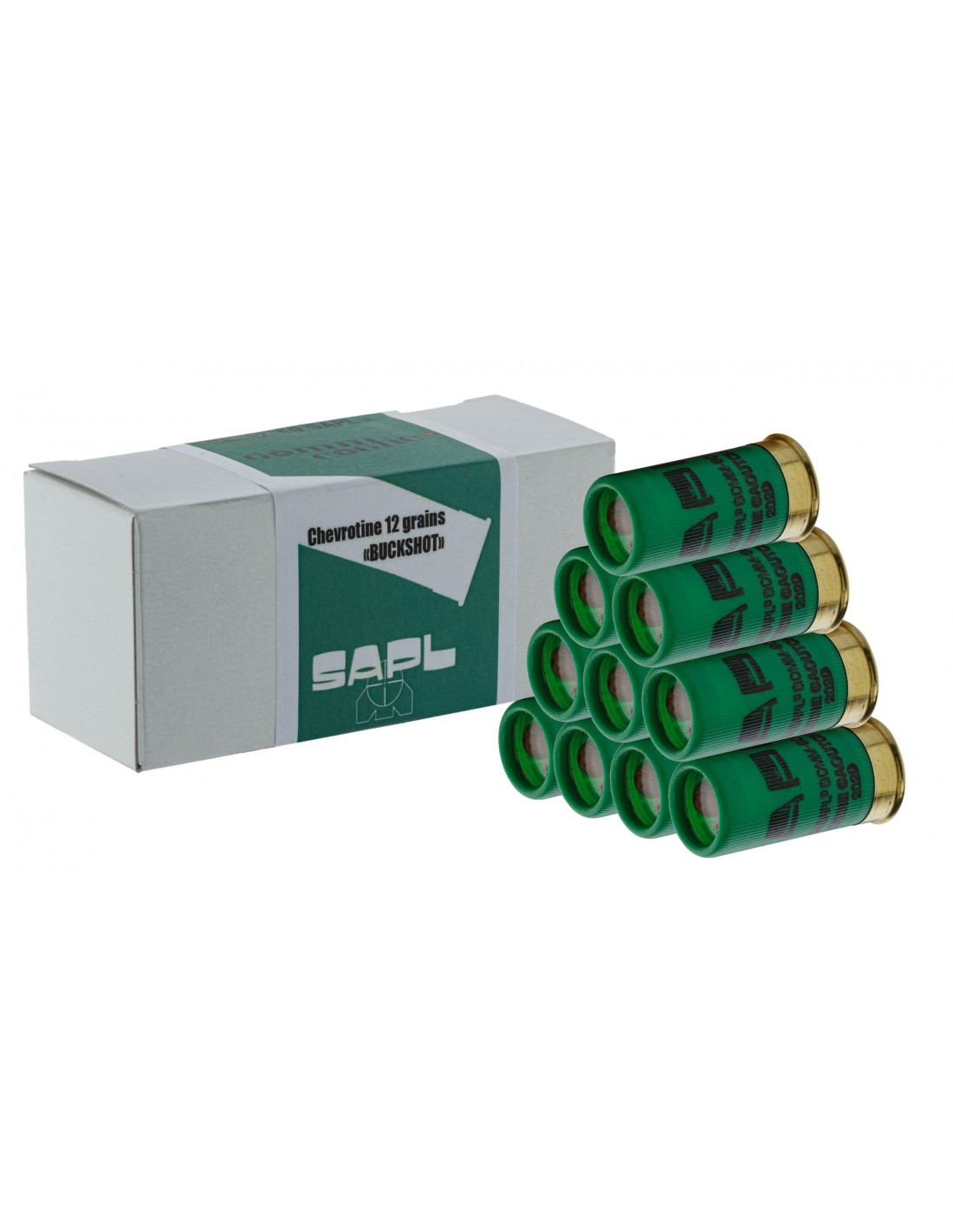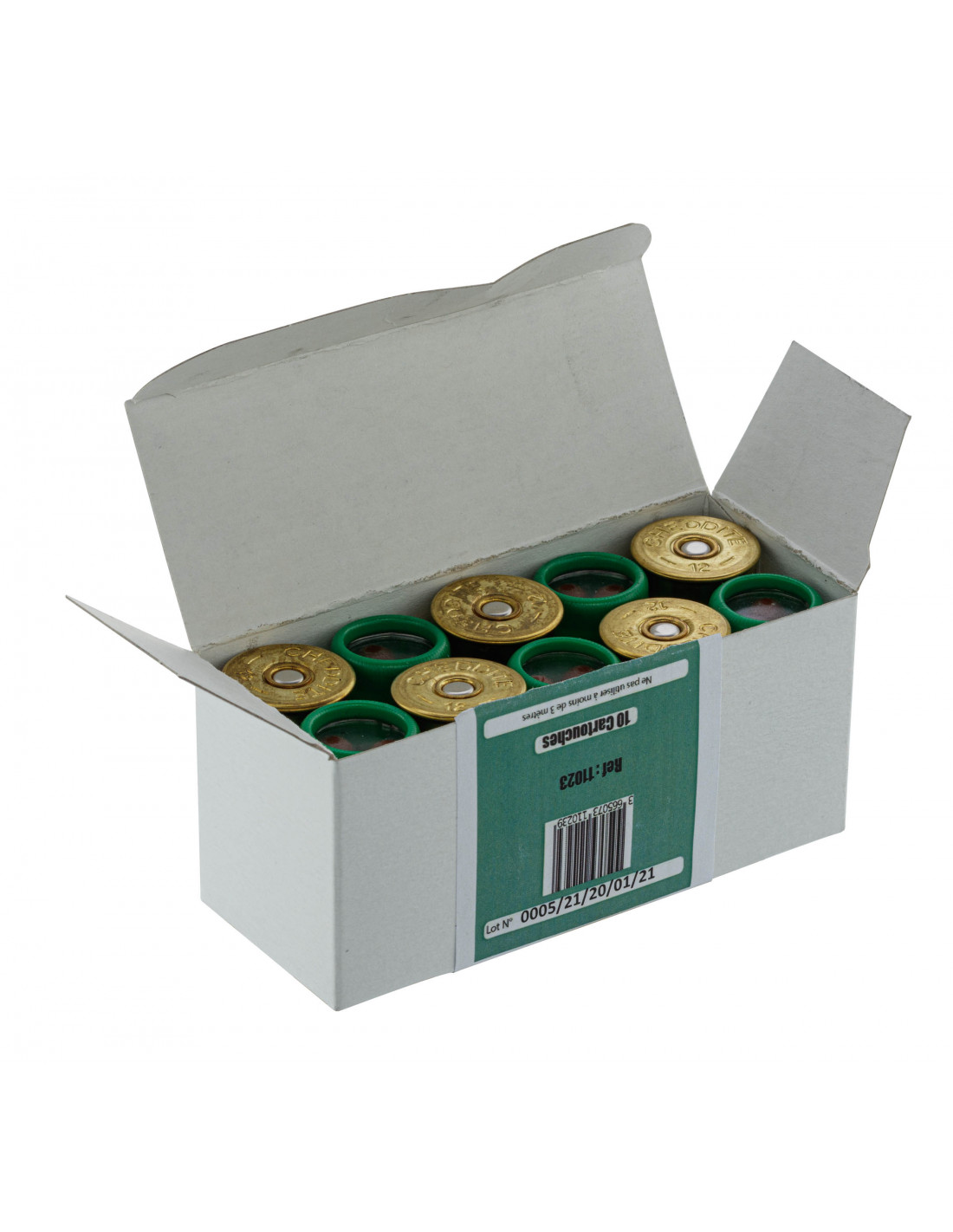 10 cartouches Gomm cogne chevrotine caoutchouc cal. 12/50