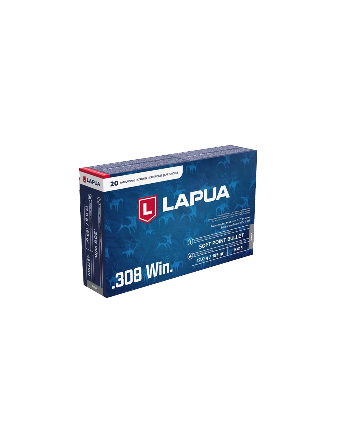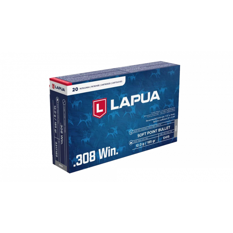 Cartouches hautes performances Lapua en calibre .308 Win, chargées avec un projectile Soft Point de 185 grains offrant une précision remarquable, une expansion contrôlée et une énergie d’impact optimale.