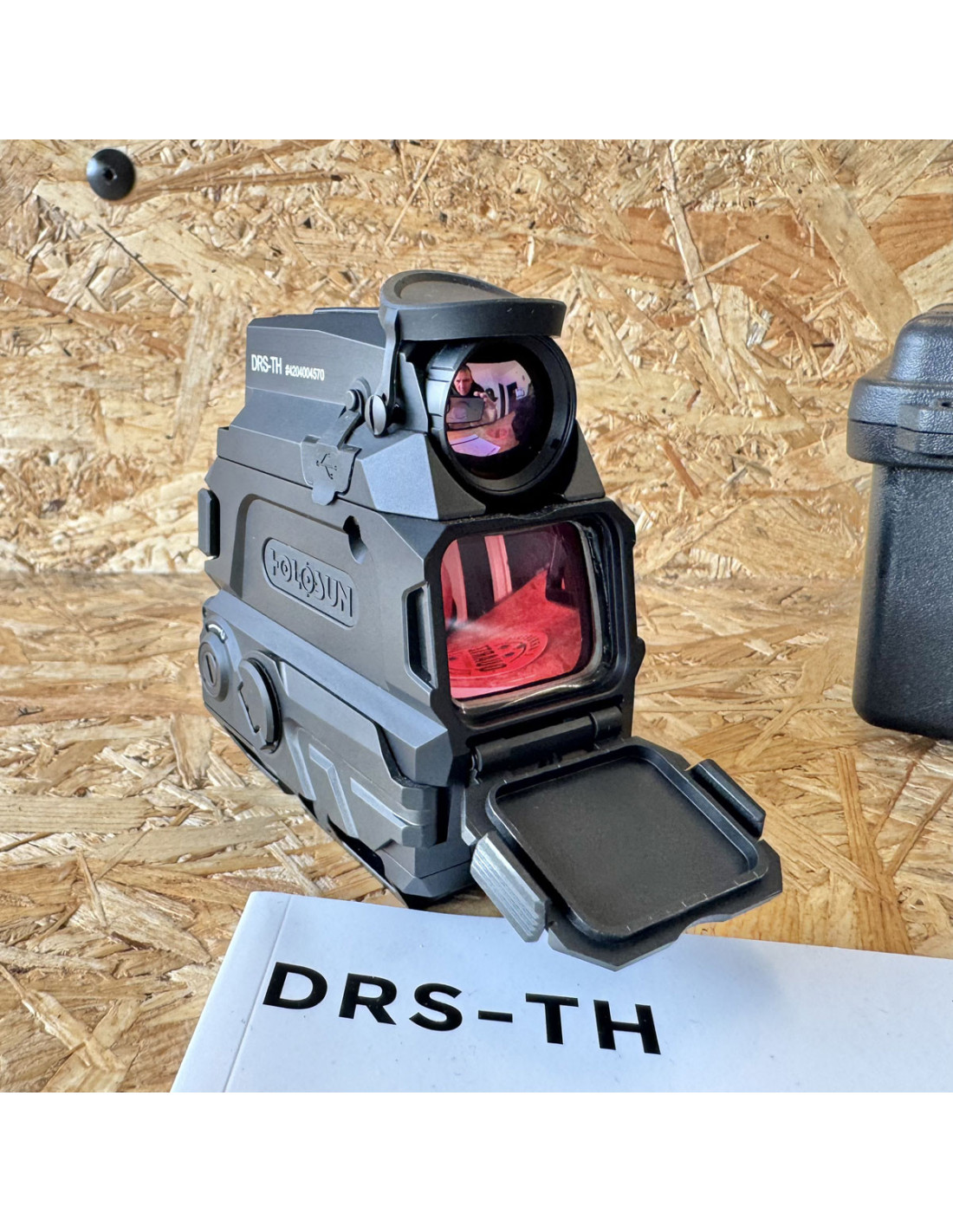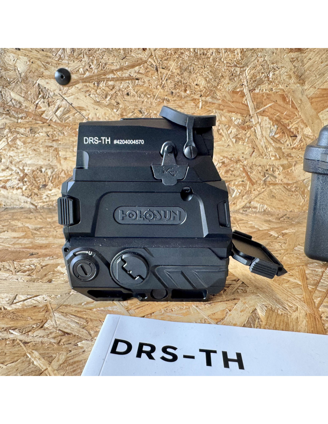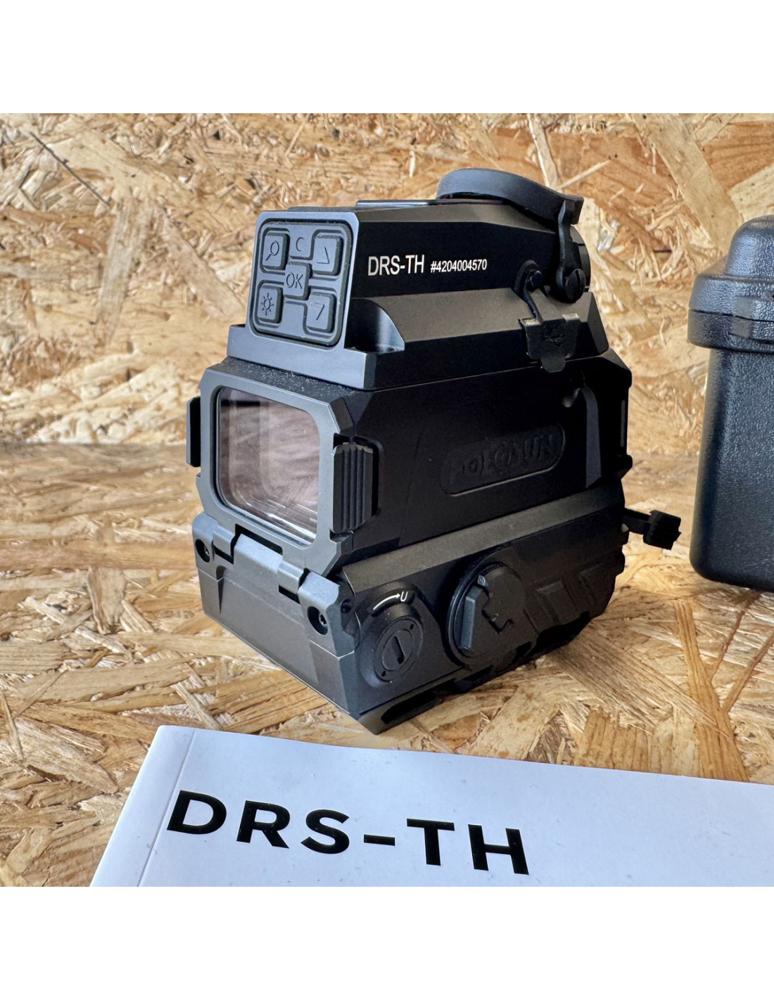 Le Holosun DRS-TH est un viseur à point rouge innovant intégrant une vision thermique. Il combine un réticule LED Multi-Réticule (MRS) avec des options de réticule numérique, un capteur thermique de 256x192 pixels et un écran OLED de 1024x768 pixels offrant une fréquence de rafraîchissement de 50 images par seconde. L'appareil propose un zoom numérique 3x et 5x, ainsi qu'un système d'enregistrement vidéo interne. Il est alimenté par deux batteries lithium-ion 18350, offrant une autonomie d'environ 8 heures. Le DRS-TH est étanche selon la norme IP67 et dispose de la technologie Shake Awake, qui active automatiquement le viseur à la détection de mouvement.