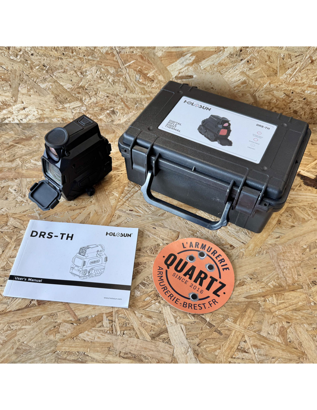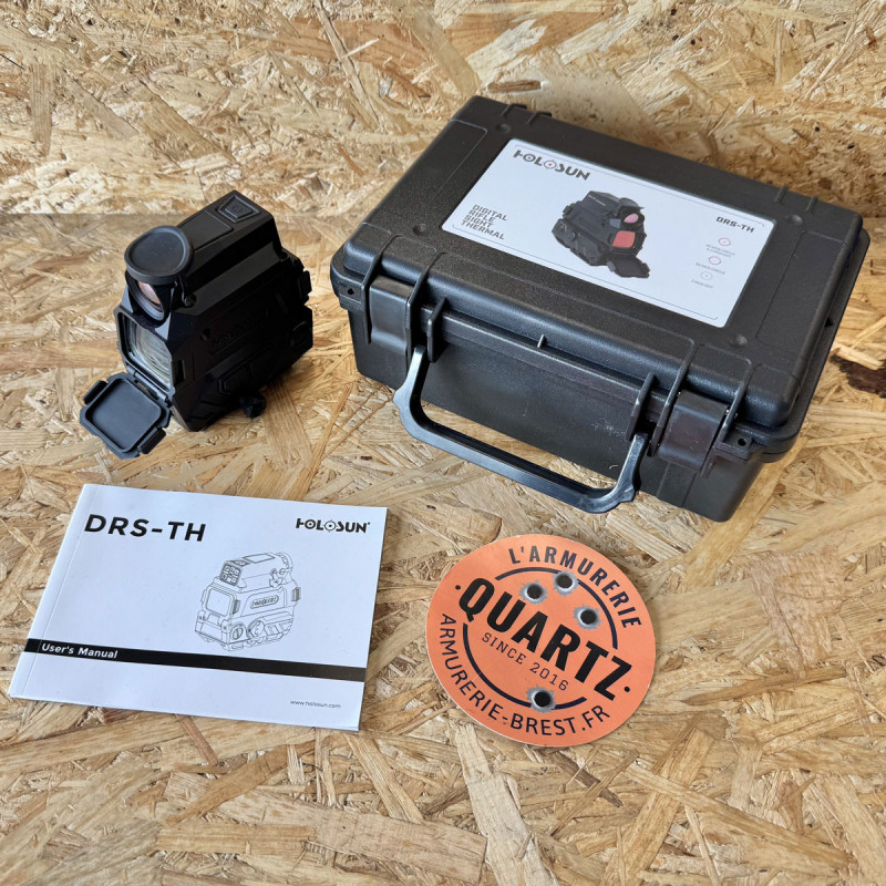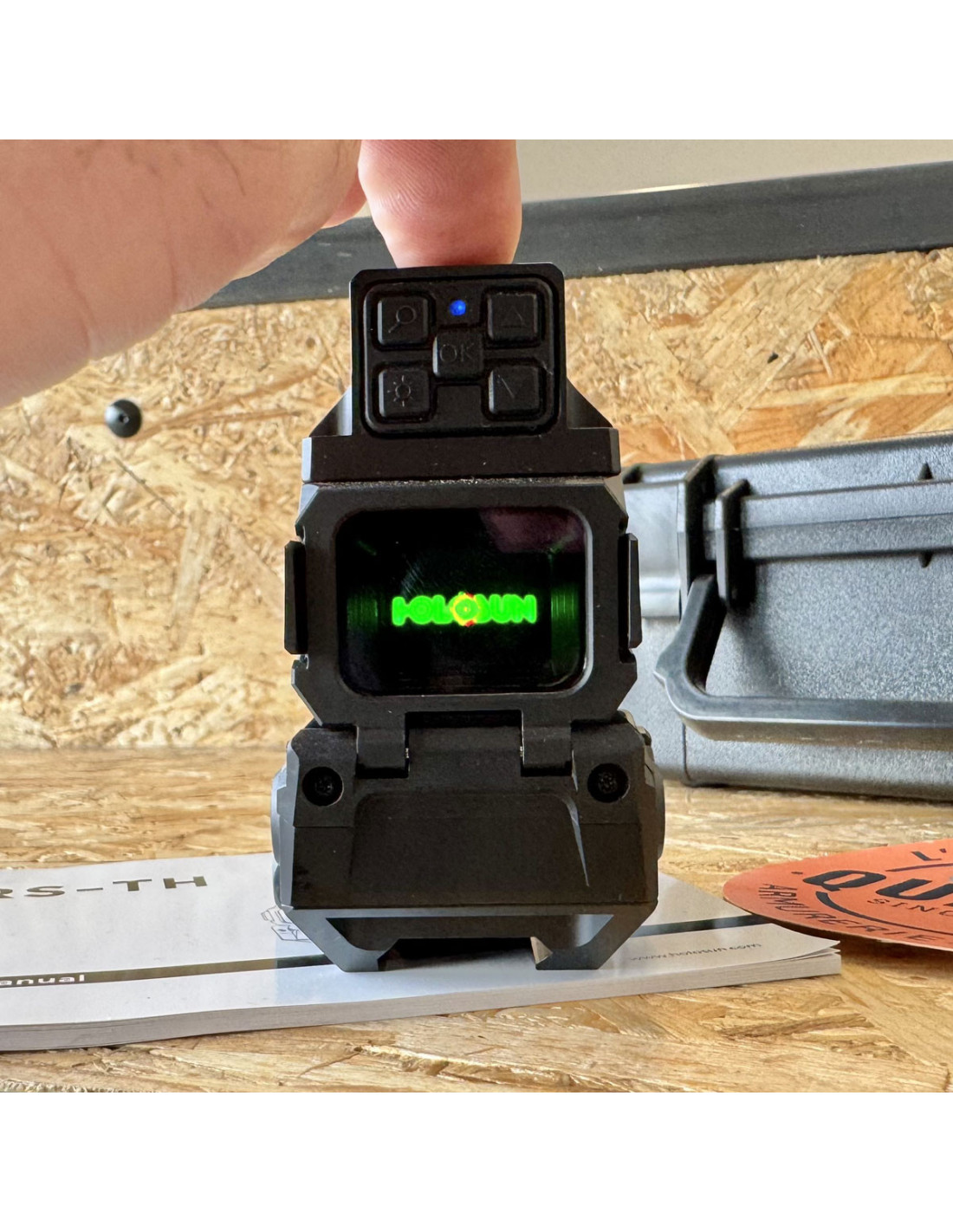 Le Holosun DRS-TH est un viseur à point rouge innovant intégrant une vision thermique. Il combine un réticule LED Multi-Réticule (MRS) avec des options de réticule numérique, un capteur thermique de 256x192 pixels et un écran OLED de 1024x768 pixels offrant une fréquence de rafraîchissement de 50 images par seconde. L'appareil propose un zoom numérique 3x et 5x, ainsi qu'un système d'enregistrement vidéo interne. Il est alimenté par deux batteries lithium-ion 18350, offrant une autonomie d'environ 8 heures. Le DRS-TH est étanche selon la norme IP67 et dispose de la technologie Shake Awake, qui active automatiquement le viseur à la détection de mouvement.