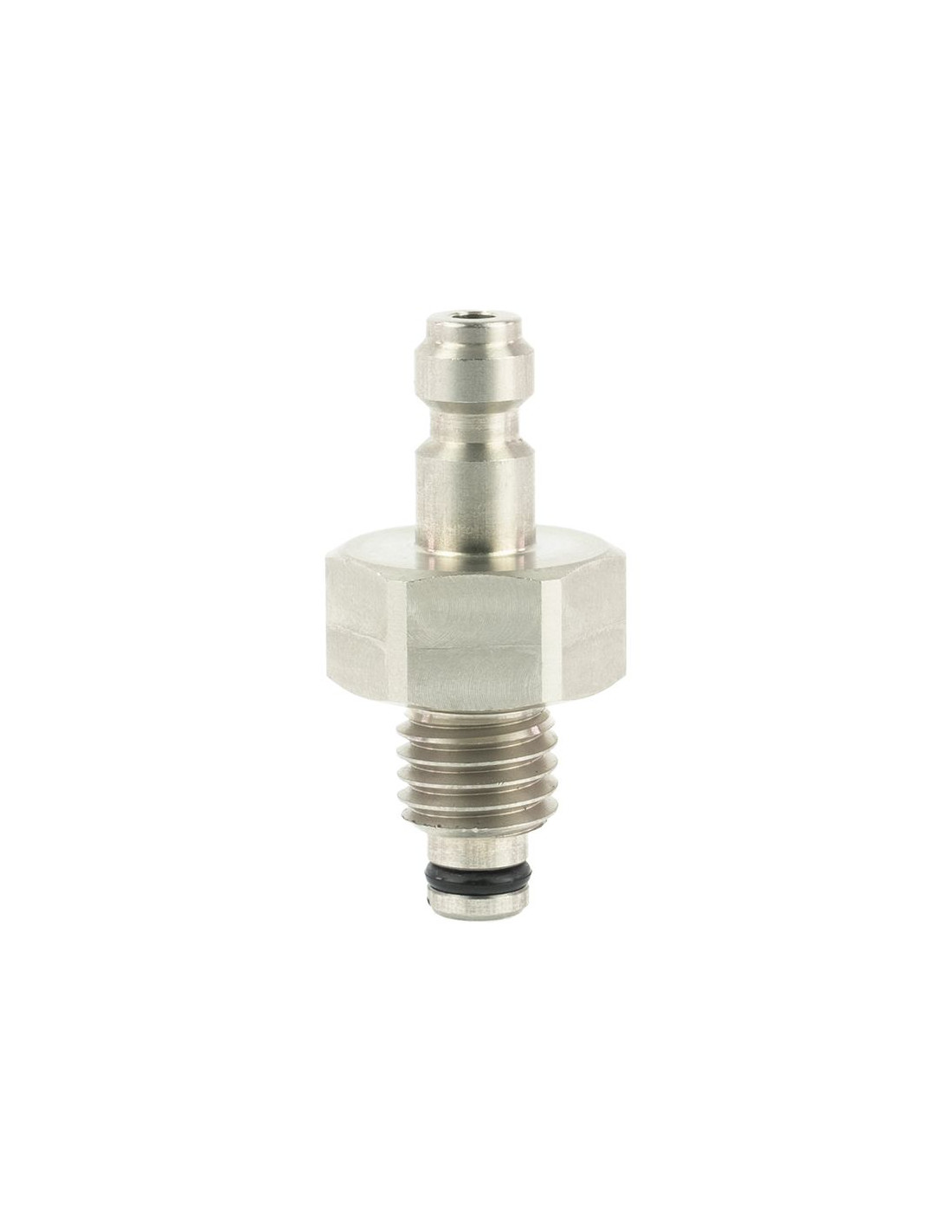 Filetée M11x1.5 d’un côté (cartouche) et équipée d’un raccord Foster, raccord type QD compatible avec la majorité des compresseurs haute pression de l’autre.