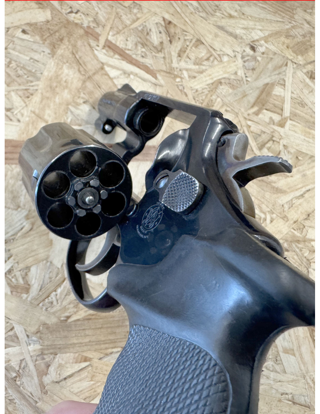 Revolver Smith & Wesson Model 10-7, Modèle 10, 7eme version en acier bruni, canon court dit "Snub Nose" calibre 38 spécial.
