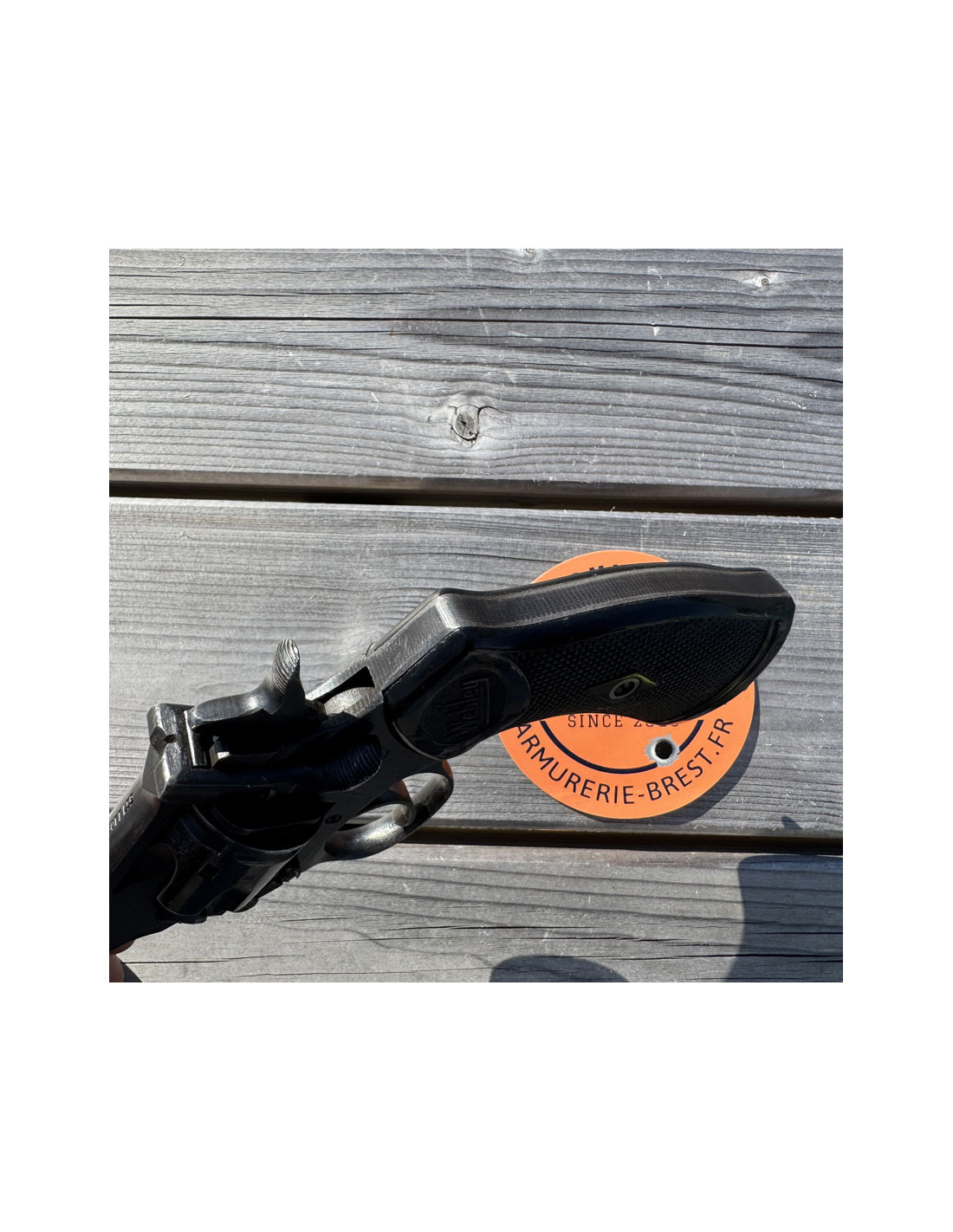Ce revolver emblématique, dans un très bel état général, présente un canon avec de belles rayures bien nettes, sans aucune oxydation, une mécanique fluide et une finition remarquablement bien conservée. Quelques traces de flottement sur le bronzage, plaquette impeccables.