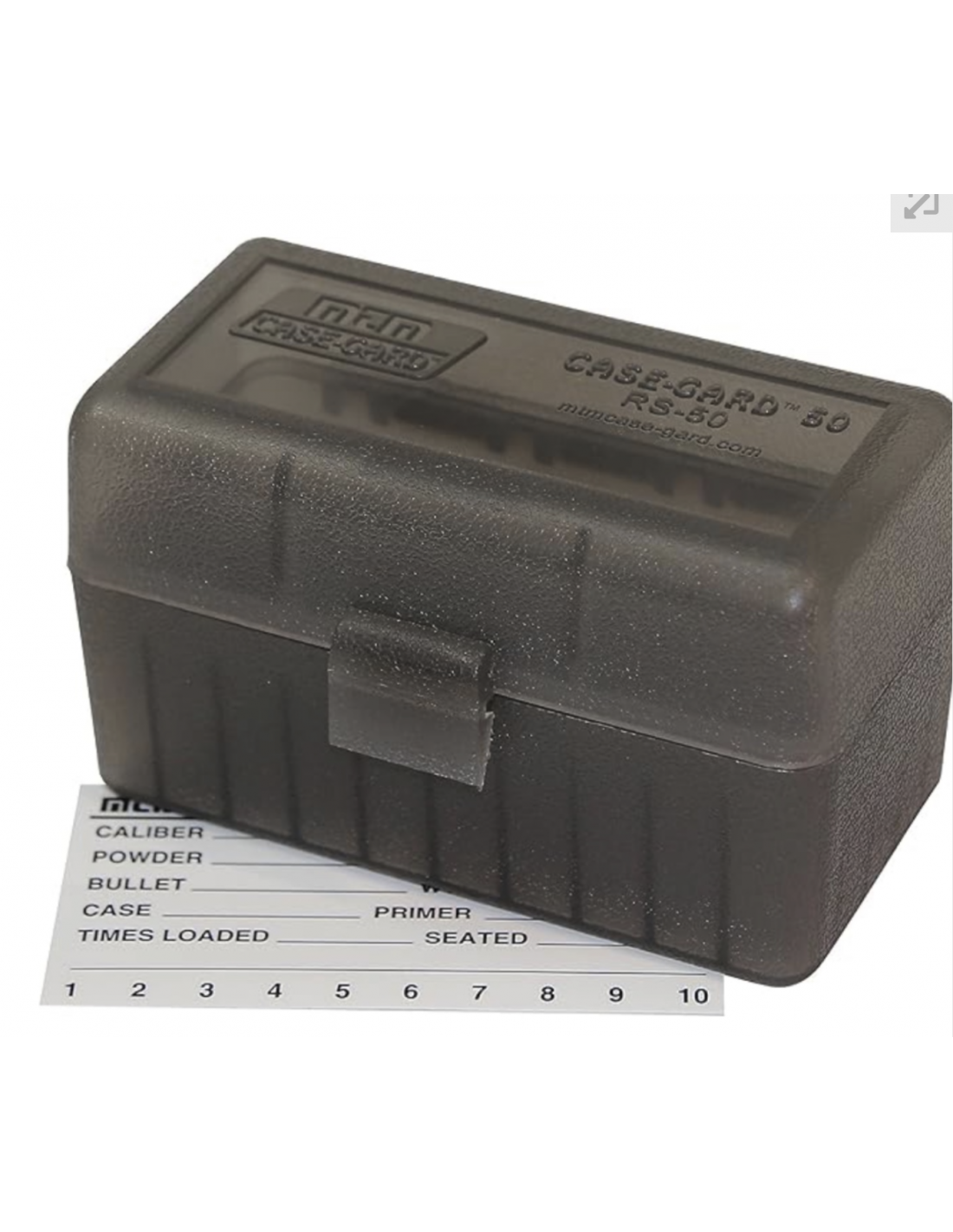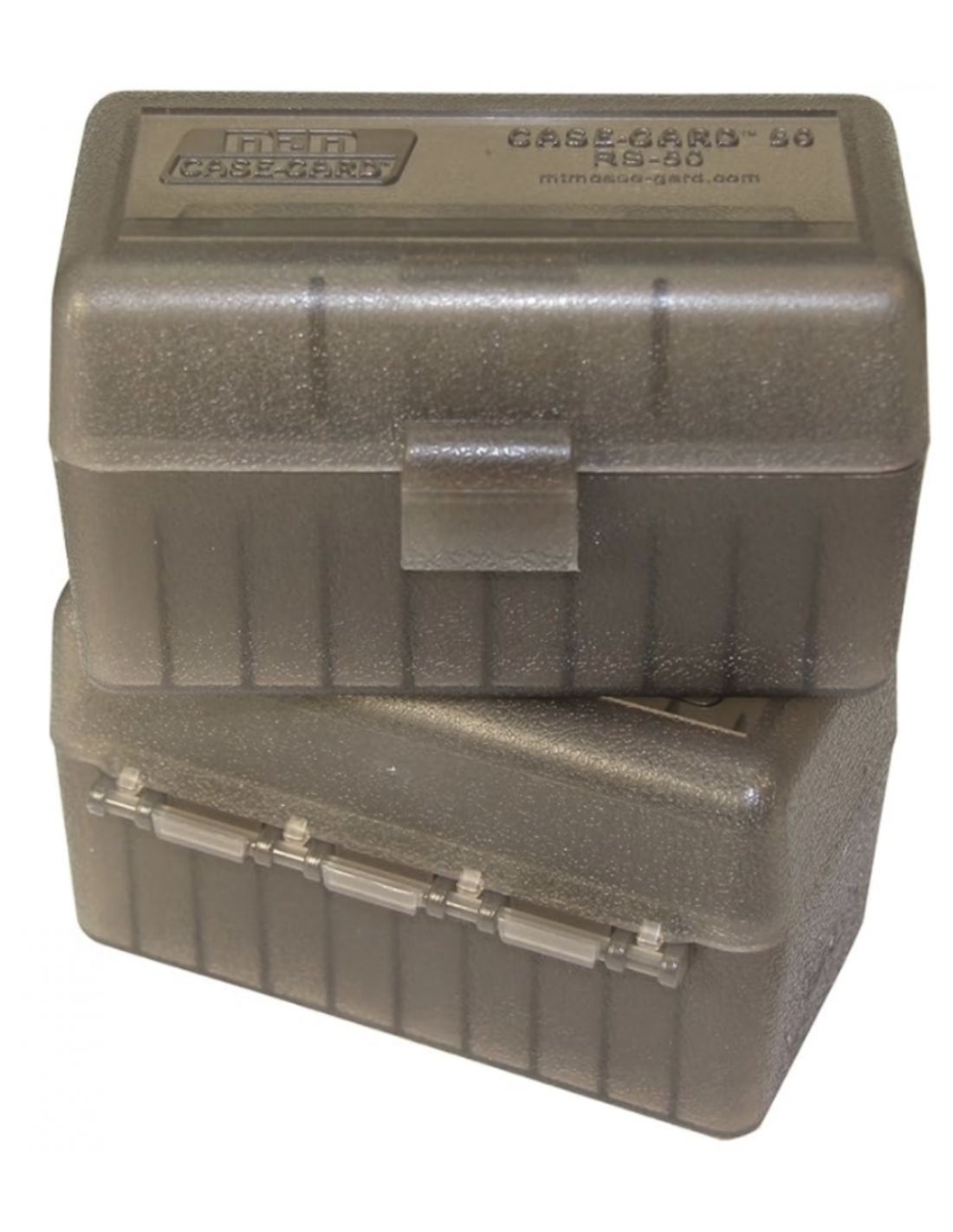 À la fin des années 1960, le modèle original RS-S-50 a été conçu spécialement pour les tireurs de bench-rest. Aujourd’hui, les boîtes CASE-GARD 50 existent en huit tailles, adaptées du calibre .22 Hornet jusqu’au .375 Remington Ultra Mag., chaque cartouche étant rangée dans son compartiment individuel.