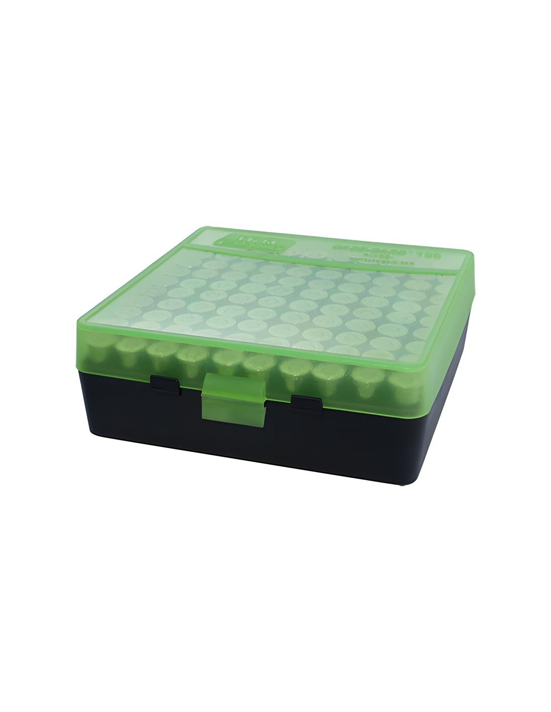 Boîte à munitions pour armes de poing à couvercle rabattable de 100 cartouches. Boite de stockage de recharges idéale pour le tireur qui souhaite passer plusieurs heures au stand de tir. La série de boites à munitions P-100 possède une surface texturée facilitant la prise en main tout en résistant aux éraflures, un loquet à déclic, des pieds d'empilage, une charnière sur toute la longueur et une garantie inégalée de 25 ans.