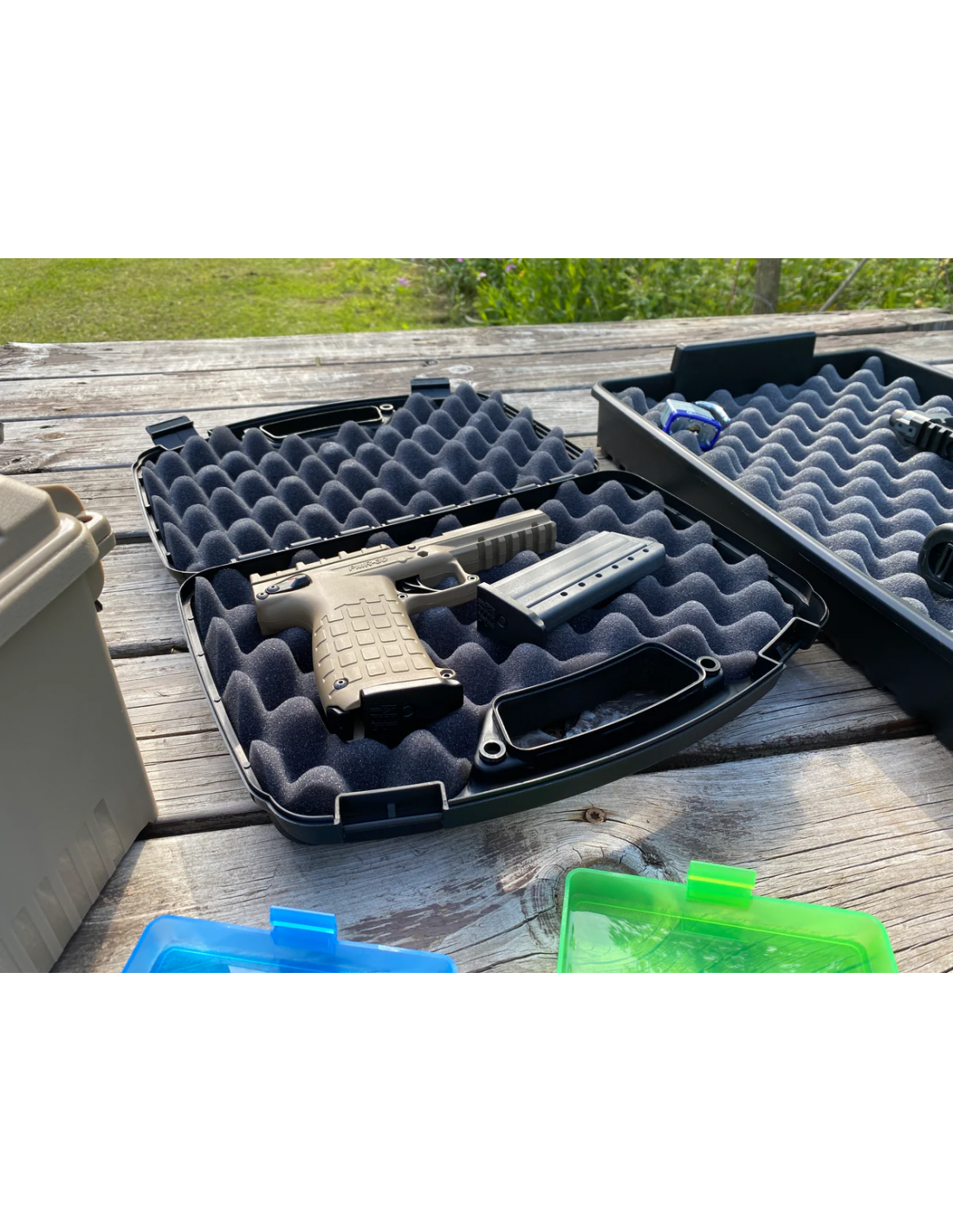 8Construction robuste en polypropylène, intérieur avec mousse protectrice et poignée confortable. Parfait pour le transport et le stockage sécurisé d’une arme de poing.
